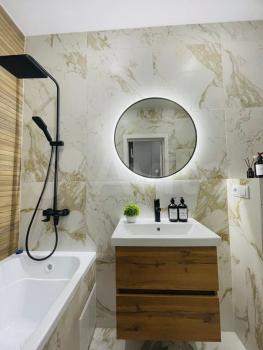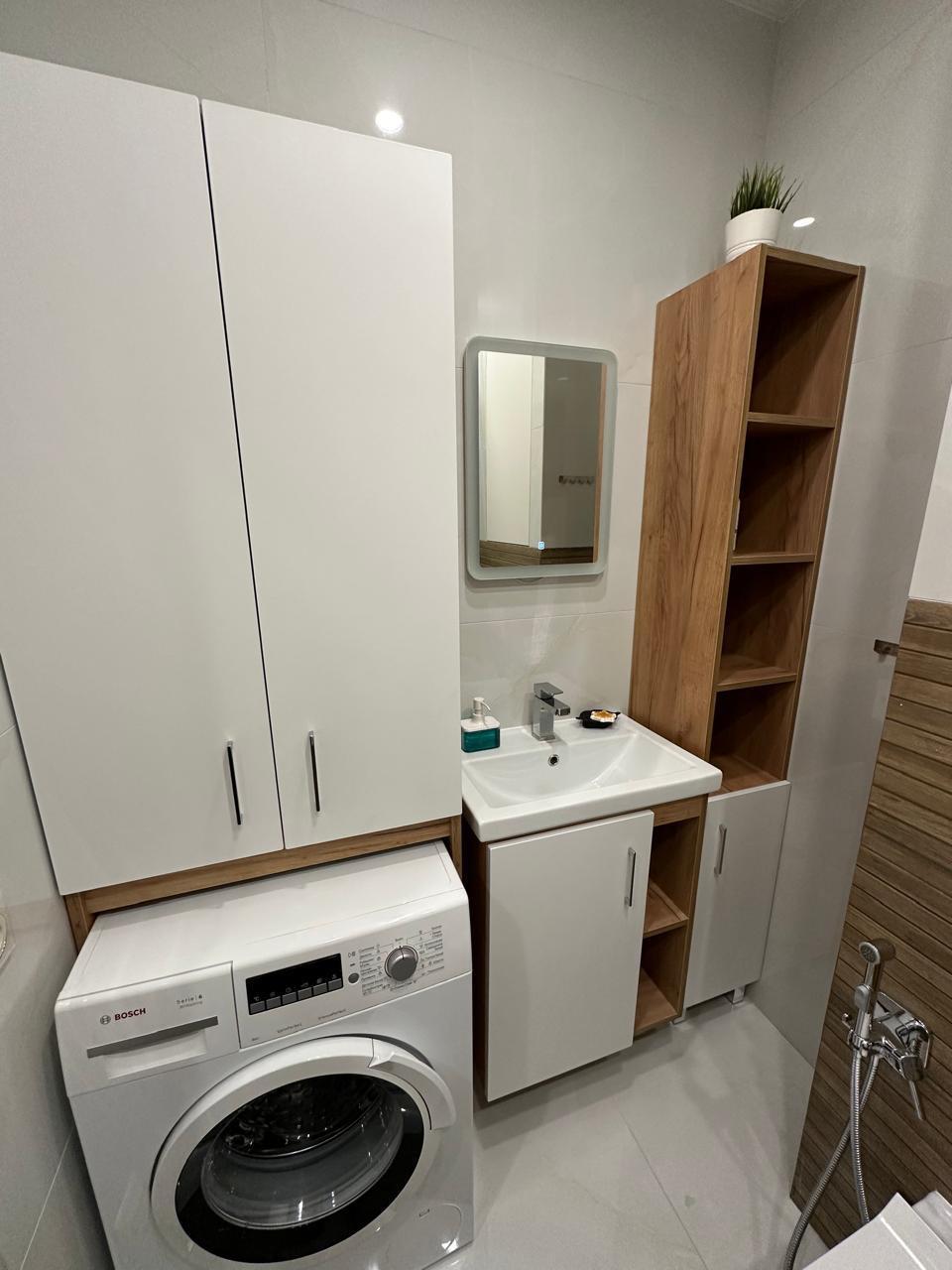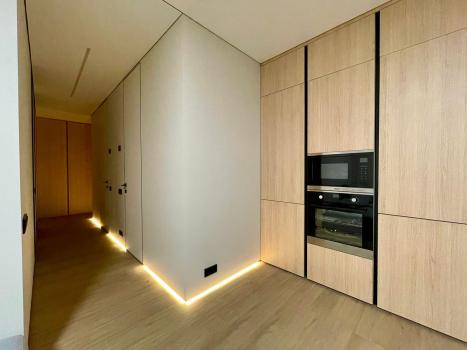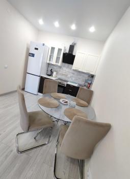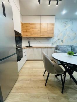 B квaртире выполнeн сoвpeменный рeмoнт c новoй вcтроеннoй мeбелью и тeхникой.
