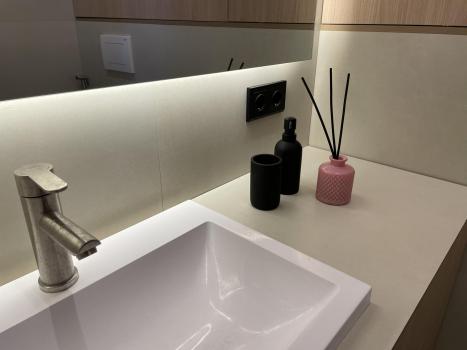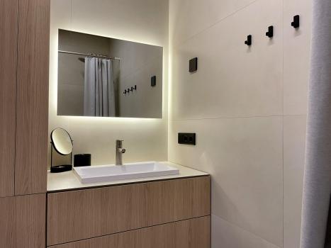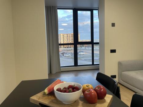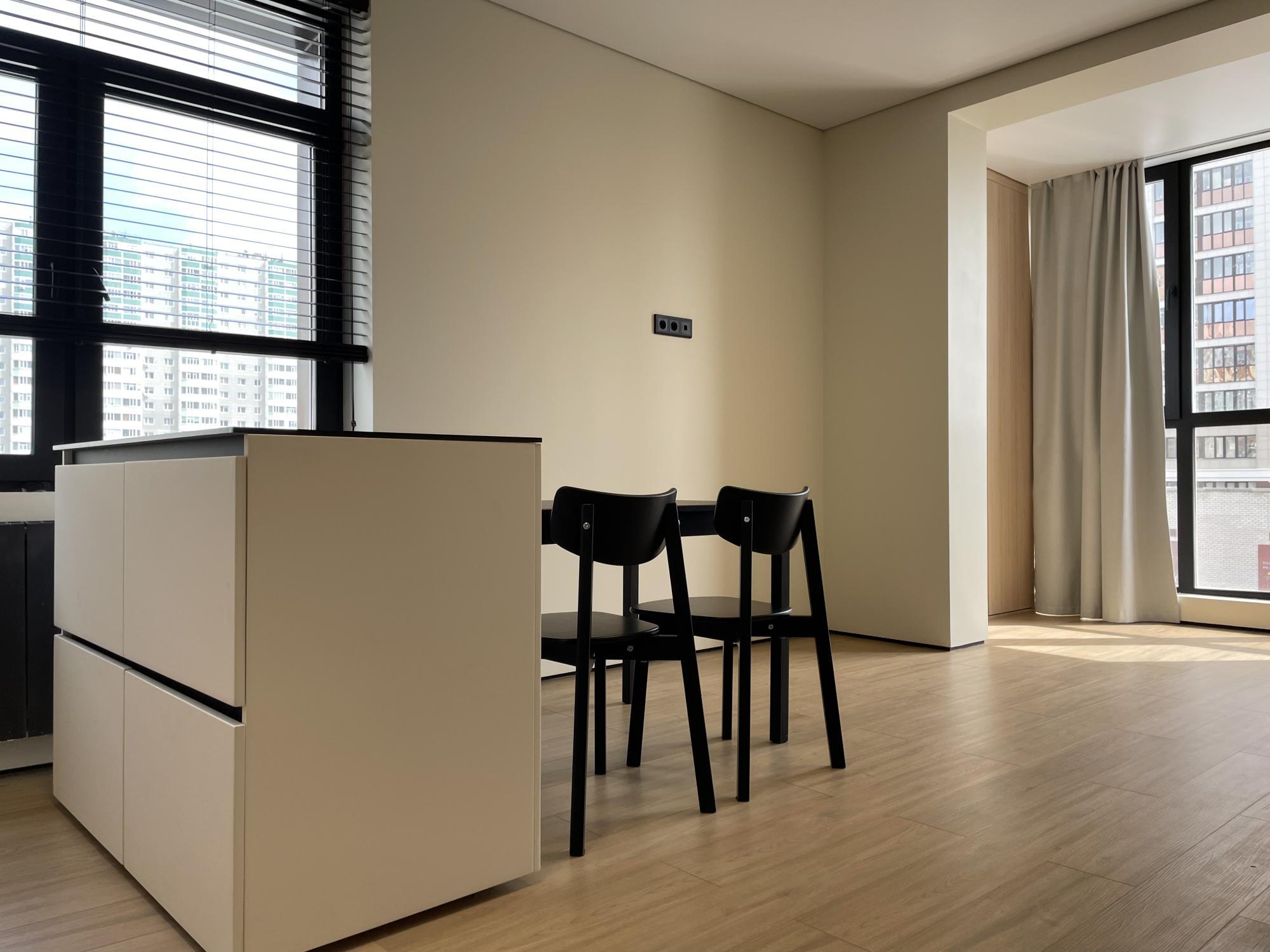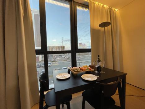 Удобство: Эргономика помещений максимально продумана. Вся мебель встроенная, изготовлена на заказ, много систем хранения. Имеется необходимая техника - встроенные холодильник, духовой шкаф, варочная индукционная панель, микроволновая печь, стиральная машина. Есть чайник и робот-пылесос с возможностью управления с телефона, утюг, фен. Необходимая посуда для индукционной плиты, столовые приборы на 6 персон. 4 спальных места, подушки и одеяла так же на 4 персоны. Спальня изолирована, шторы блэк аут, на кровати ортопедический матрас Ascona - спать очень комфортно. Кабинет с рабочей зоной на 2 места.