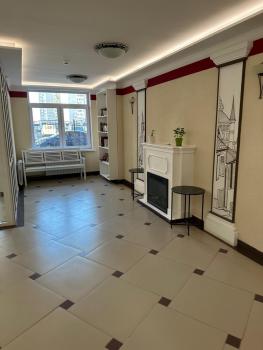 Престиж: Ремонт в квартире дизайнерский, размер окон увеличенный, скрытые двери высотой в потолок. Есть зона отдыха с массажным креслом-качалкой Yamaguchi. Стены крашены премиальной краской, пол выложен единым контуром, теневые плинтуса и потолки. В сан узлах на стенах и на полу уложен керамогранит. Вместо полотенцесушителя установлена теплая стена. Вместо телевизора - проектор.