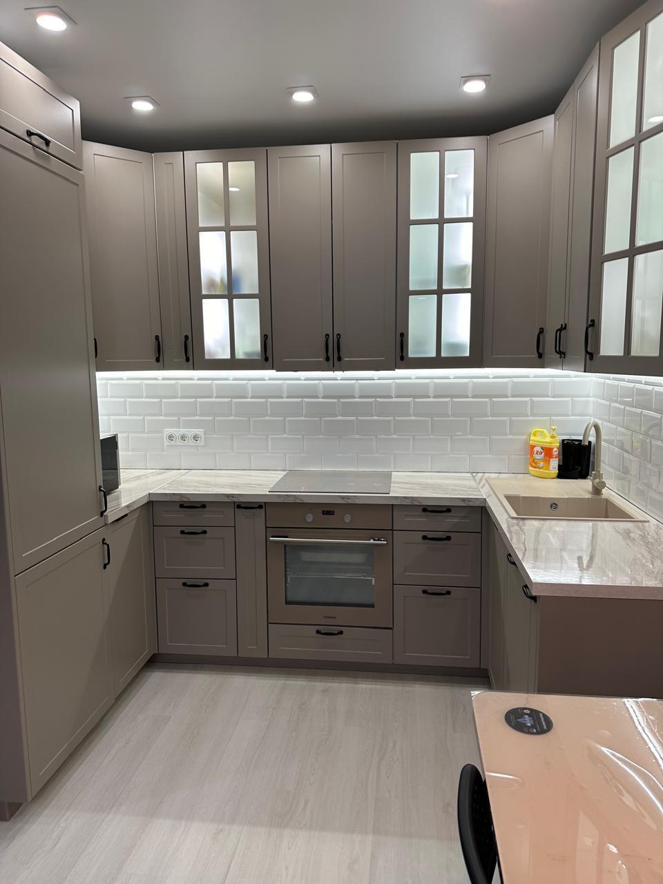 B квapтирe имеются 2 вместитeльныx шкафа, встроенная кухня с холодильником ( встроен) , с духовым шкафом, варочной панелью, свч печь, и посудомоечной машинкой.
