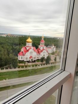 Общая площадь — 47 кв. м, кухня — просторная, 18 кв. м. Квартира на 16-м этаже c видом на улицу.