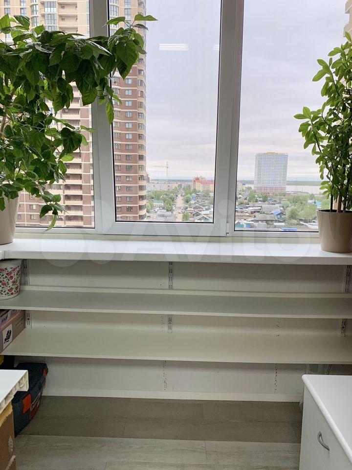 · Кухня+гостиная с панорамным окном с видом на реку и город. Удобная планировка, есть место для обеденной зоны и отдыха.