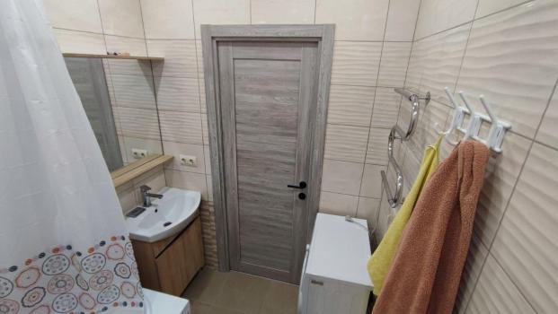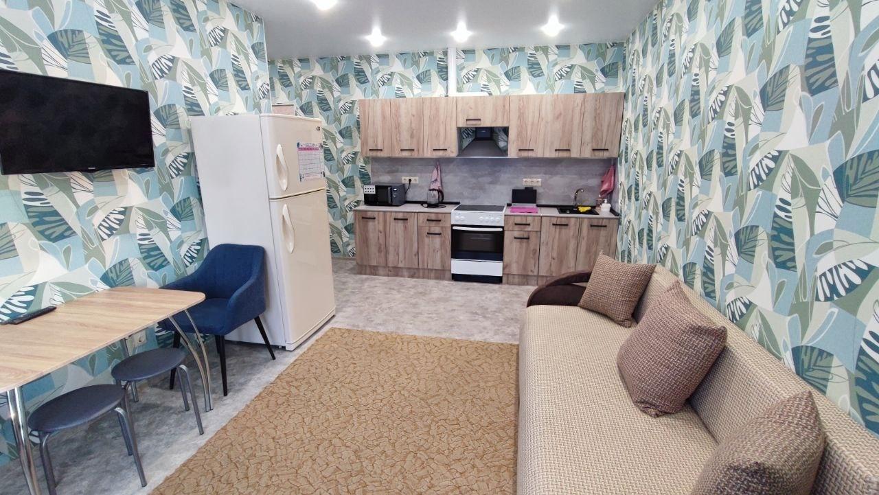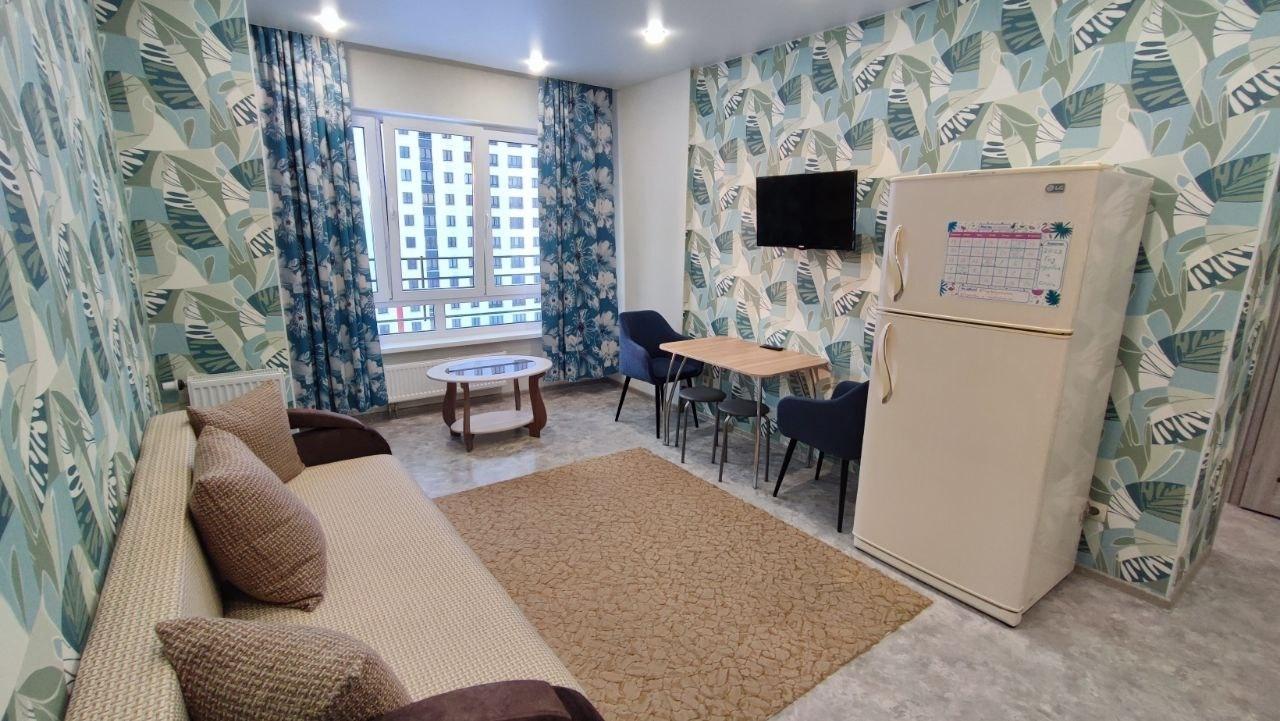 Квартира полностью меблирована и готова к проживанию. В комнате и на кухне есть вся необходимая мебель, а также вся бытовая техника: холодильник, телевизор и стиральная машина. Ванная комната оборудована душевой кабиной, все выполнено в современном стиле.