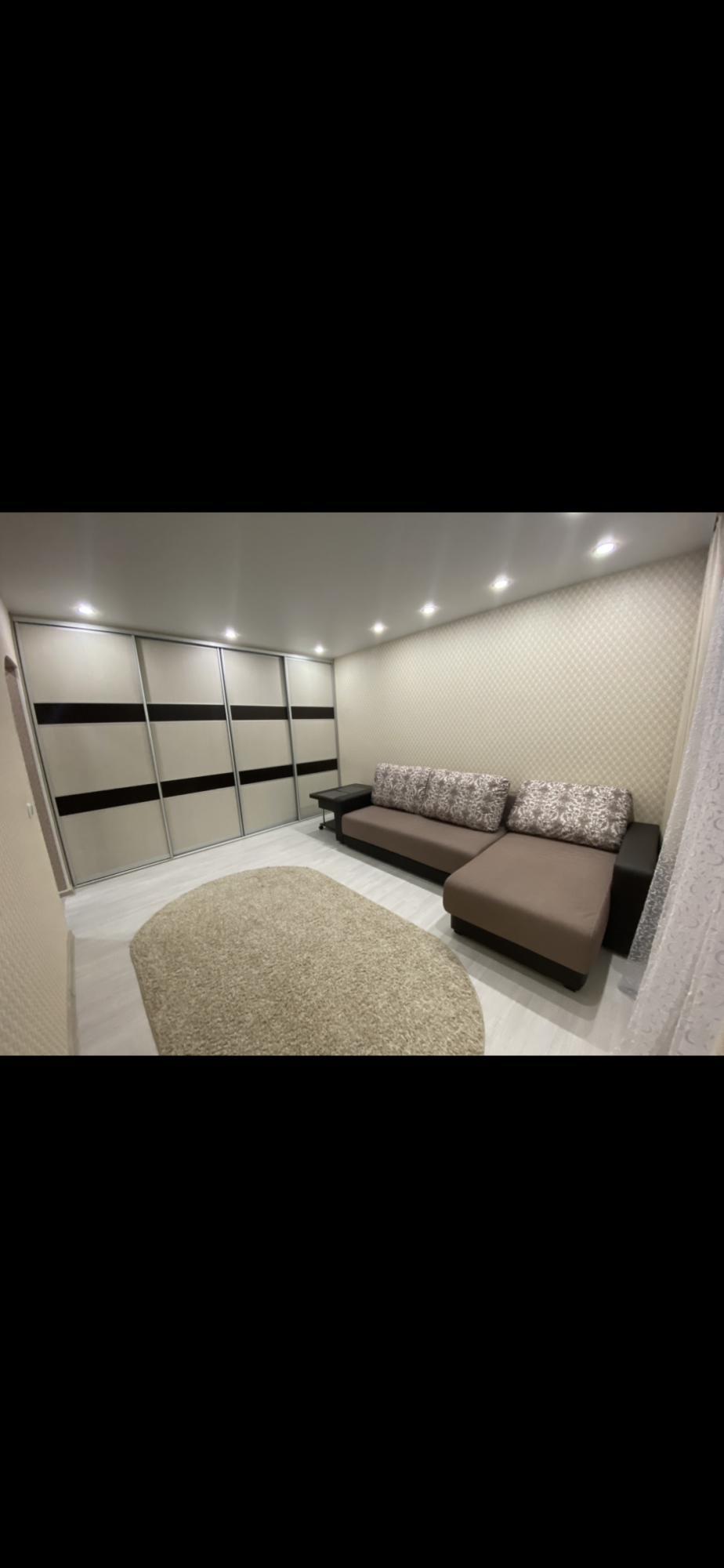 Сдам на длительный срок квартиру. В комнате большая система хранения, большой диван.