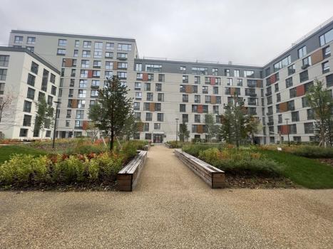 Охраняемая закрытая площадка без машин, с ландшафтным дизайном на 4 дома, с множеством развлечений для детей и не только.